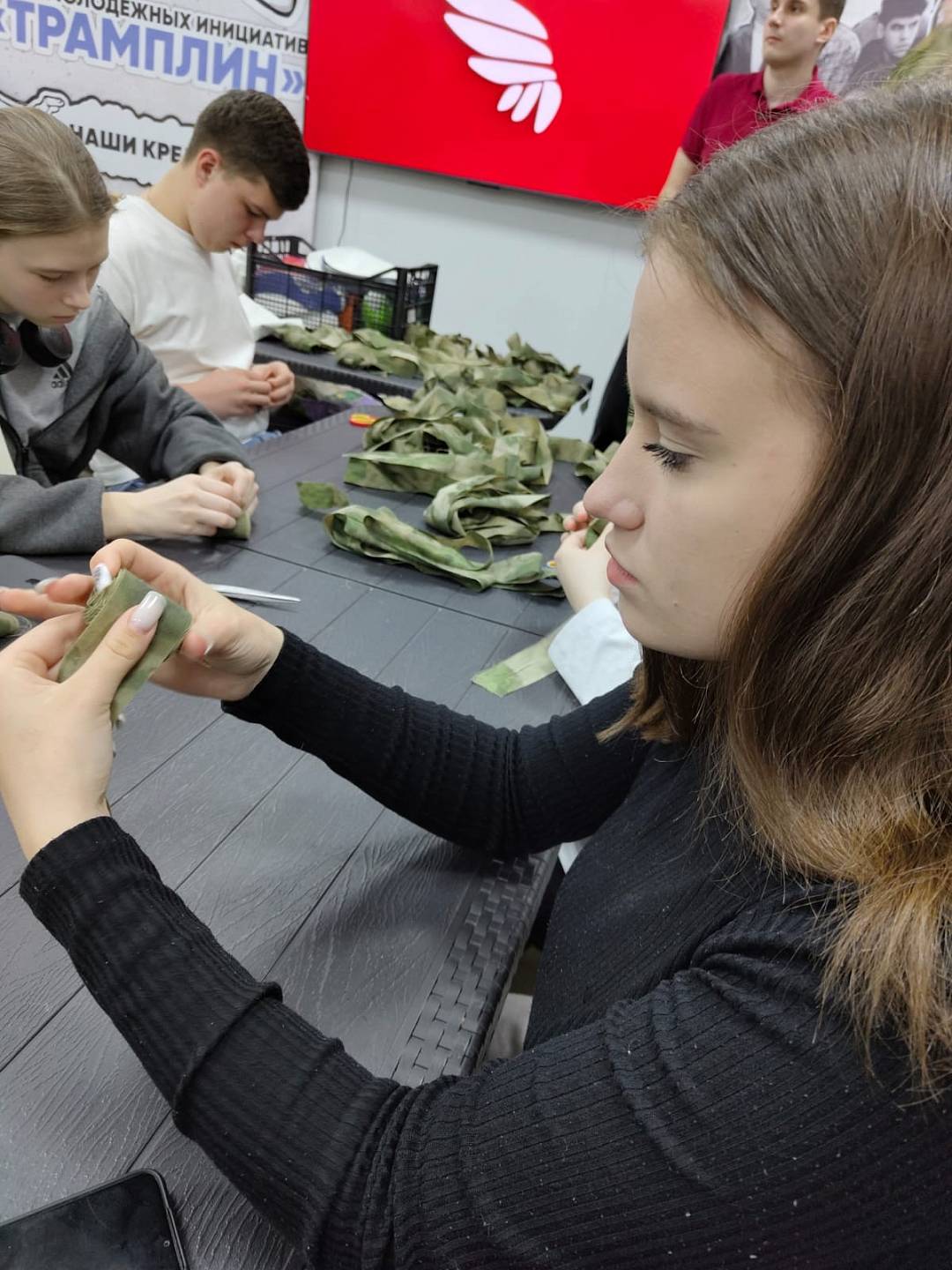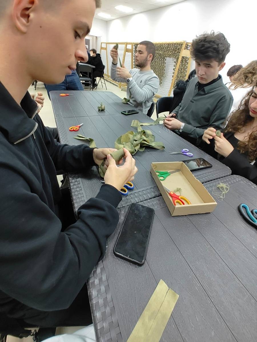 Активисты волонтерского отряда СУОР Екатерина Синькевич и Тигран Алмастян приняли участие в городской патриотической акции по обучению волонтеров-организаторов изготовлению предметов быта для участников СВО в преддверии празднования 80-летия Победы в Великой Отечественной войне.